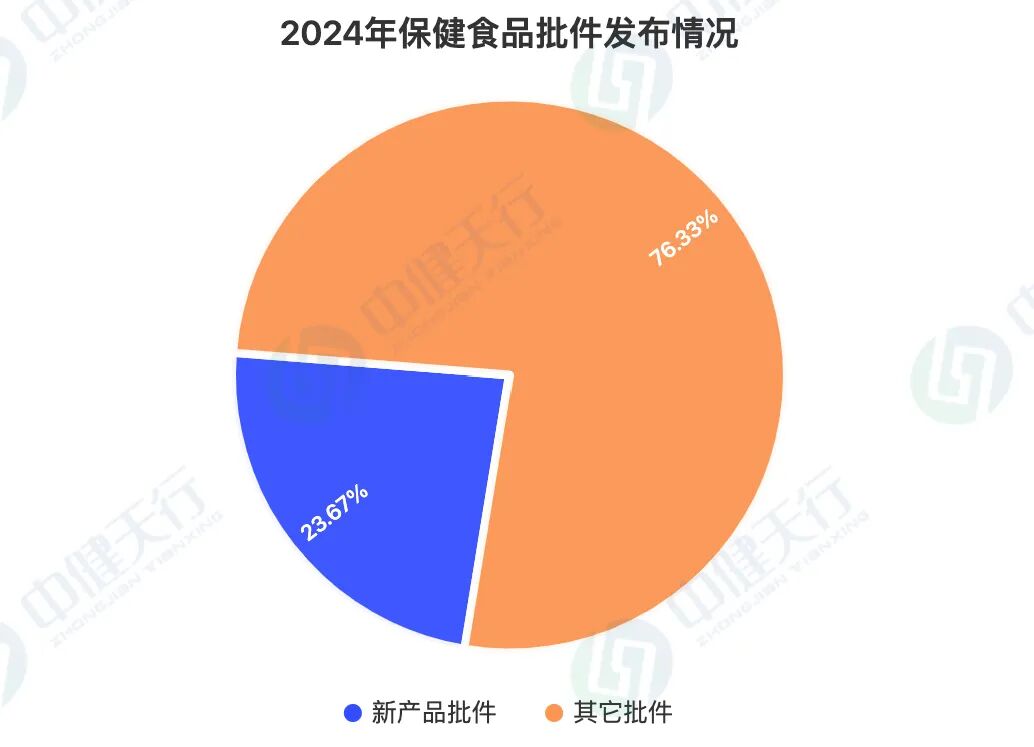 2024年,國家市場監(jiān)督管理總局食品審評(píng)中心共發(fā)布了46期保健食品批件(決定書)領(lǐng)取通知,其中待領(lǐng)取的產(chǎn)品信息涉及1390個(gè)。在這些產(chǎn)品中,新產(chǎn)品批件共計(jì)325個(gè),占比約為23%。其余1065個(gè)批件則涵蓋了變更注冊(cè)、技術(shù)轉(zhuǎn)讓等多種類型的產(chǎn)品。