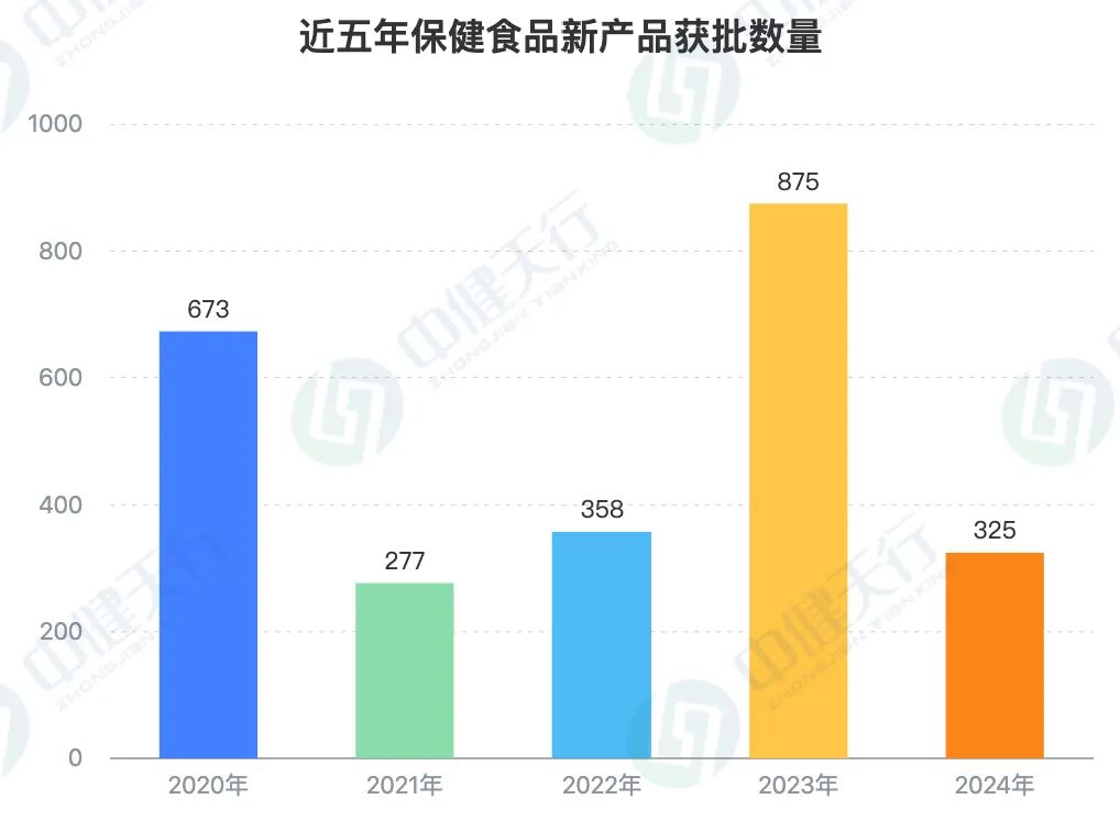 截至2024年底,根據(jù)國家市場監(jiān)督管理總局網(wǎng)站數(shù)據(jù)顯示,我國國產(chǎn)保健食品在2024年新產(chǎn)品注冊(cè)獲批的總數(shù)為325款,未有進(jìn)口產(chǎn)品通過。2020年至2024年間我國國產(chǎn)保健食品新產(chǎn)品的注冊(cè)獲批情況呈現(xiàn)出一定的波動(dòng),反映出行業(yè)監(jiān)管、審批效率以及市場需求的變化。